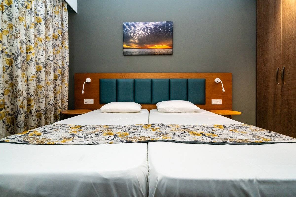 Located in a quieter area separate from the main building, our two-bedroom apartments are ideal for families or groups who want more privacy. With two separate bedrooms, a full kitchen, and private parking, they offer both space and seclusion — your own little corner of Paphos.